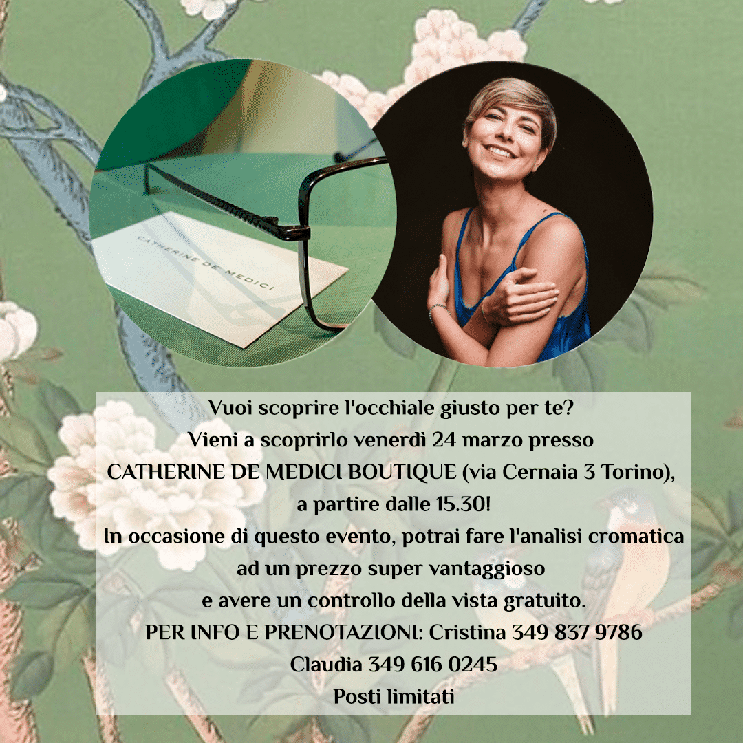 Prenota la tua colorimetria presso Catherine De Medici Boutique il 24 marzo 2023.
